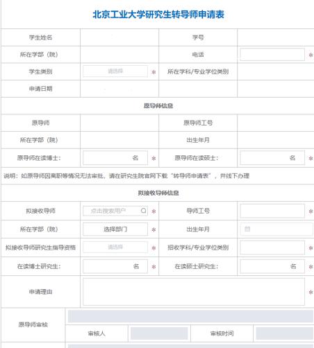 第四步:点击“研究生转导师申请”,部分信息将被自动读取。