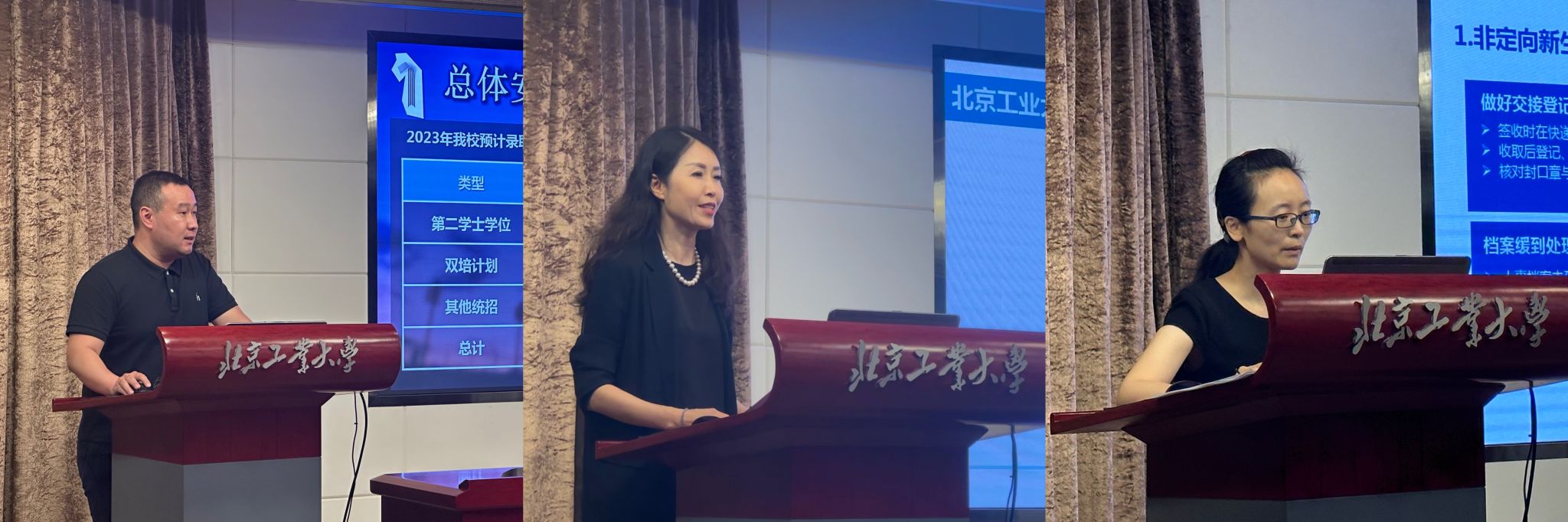 会上,招生办公室副主任郭载勋、研究生院副院长李雨竹分别就2023级本科生和研究生基本情况、新生报到流程、相关职能部处和各学部(院)工作职责进行了详细的讲解,对新生报到过程中涉及的风险点和新增环节进行了政策解读。