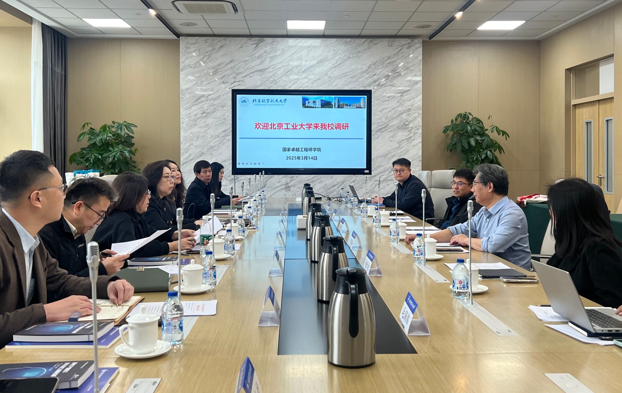 3月14日下午,刘赵淼副校长带队赴北航调研交流,研究生院、教务处、碳中和未来技术学院、机械与能源工程学院、环境科学与工程学院、材料科学与工程学院、信息科学技术学院相关负责人和教师随行调研。