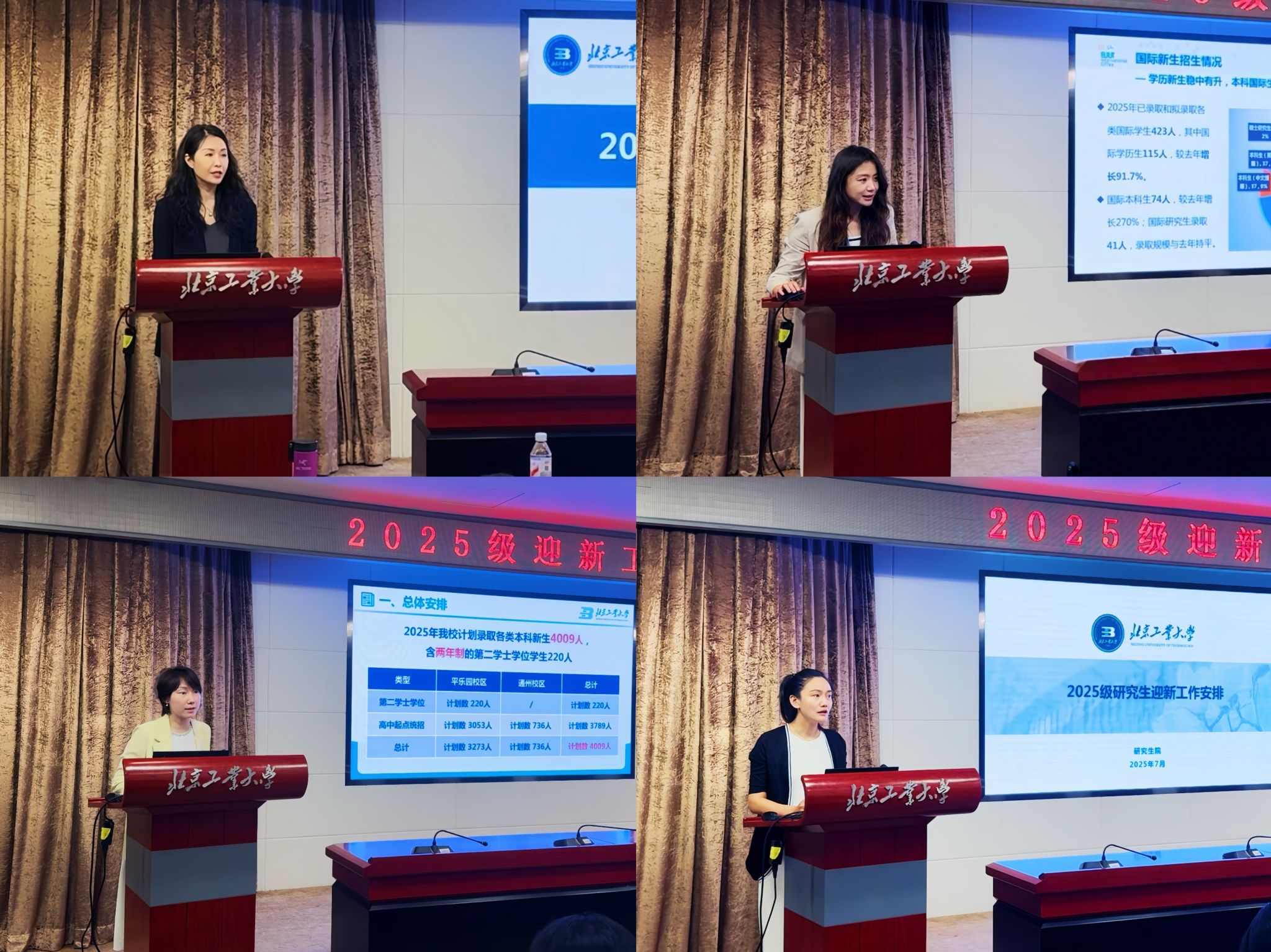 会上,招生办公室副主任马鑫蕊、研究生院招生办公室主任李梦、国际交流合作处处长樊媛分别就2025级本科生、研究生及国际生基本情况、新生报到流程、相关职能部处和各学院工作职责进行了详细的讲解,对新生报到过程中涉及的风险点和新增环节进行了政策解读。