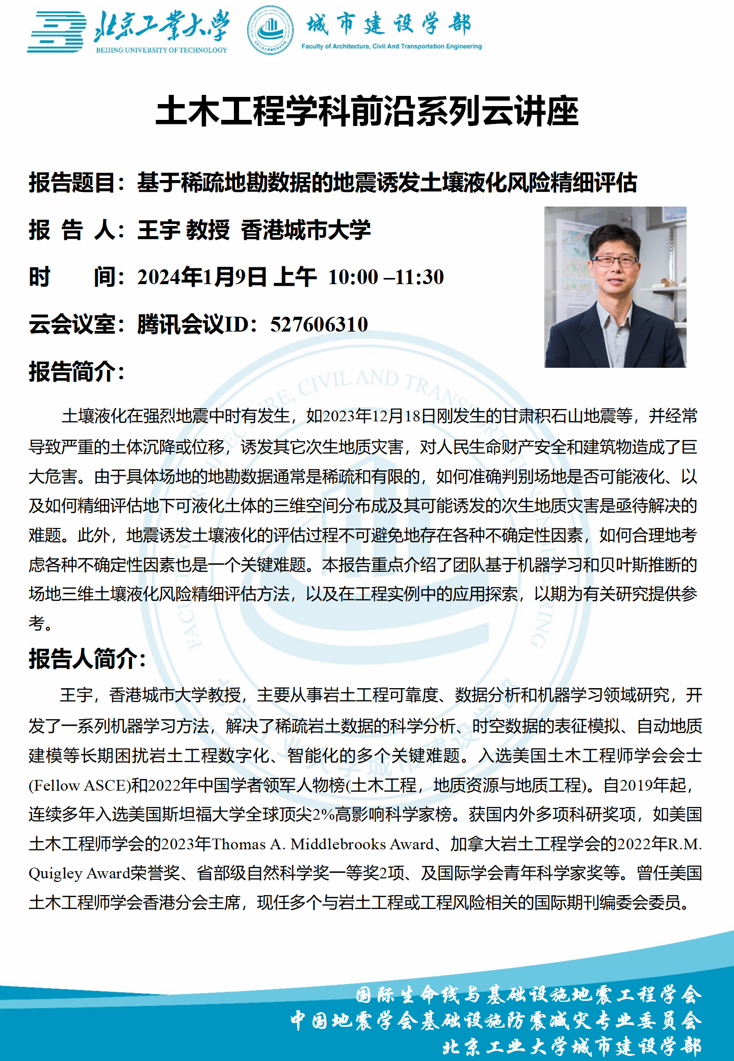 土木工程学科前沿系列云讲座——基于稀疏地勘数据的地震诱发土壤液化风险精细评估