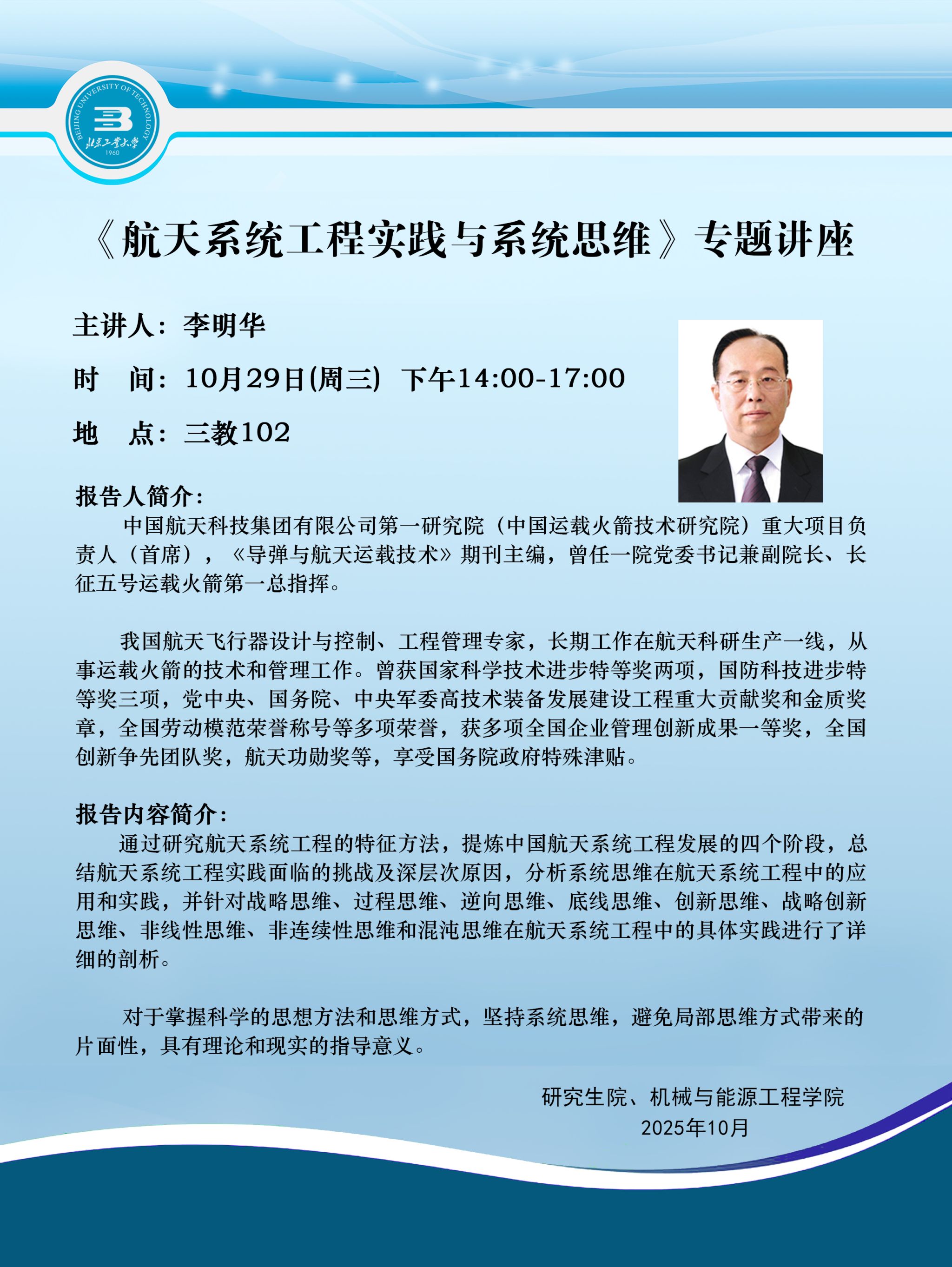《航天系统工程实践与系统思维》专题讲座